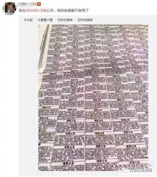 事實上,這個有點夸張了,被普遍轉發(fā)的上述圖片應為深圳商報廣告版面,刊登各類公告、遺失聲明、啟示等。版面上的確以清算公告居多,但一直如此,并非新情況。
