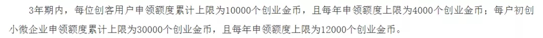 補(bǔ)貼金額:小微企業(yè)申領(lǐng)額度累計(jì)上限為30000個(gè)創(chuàng)業(yè)金幣(3000元),且每年申領(lǐng)額度上限為12000個(gè)創(chuàng)業(yè)金幣(1200元)