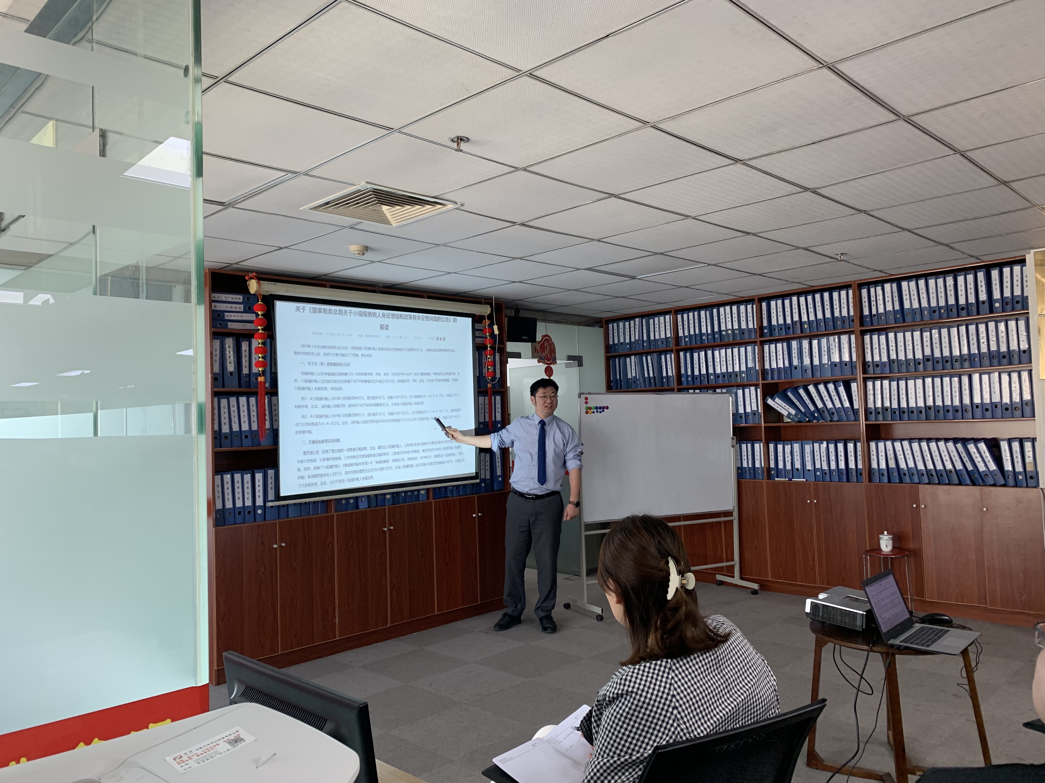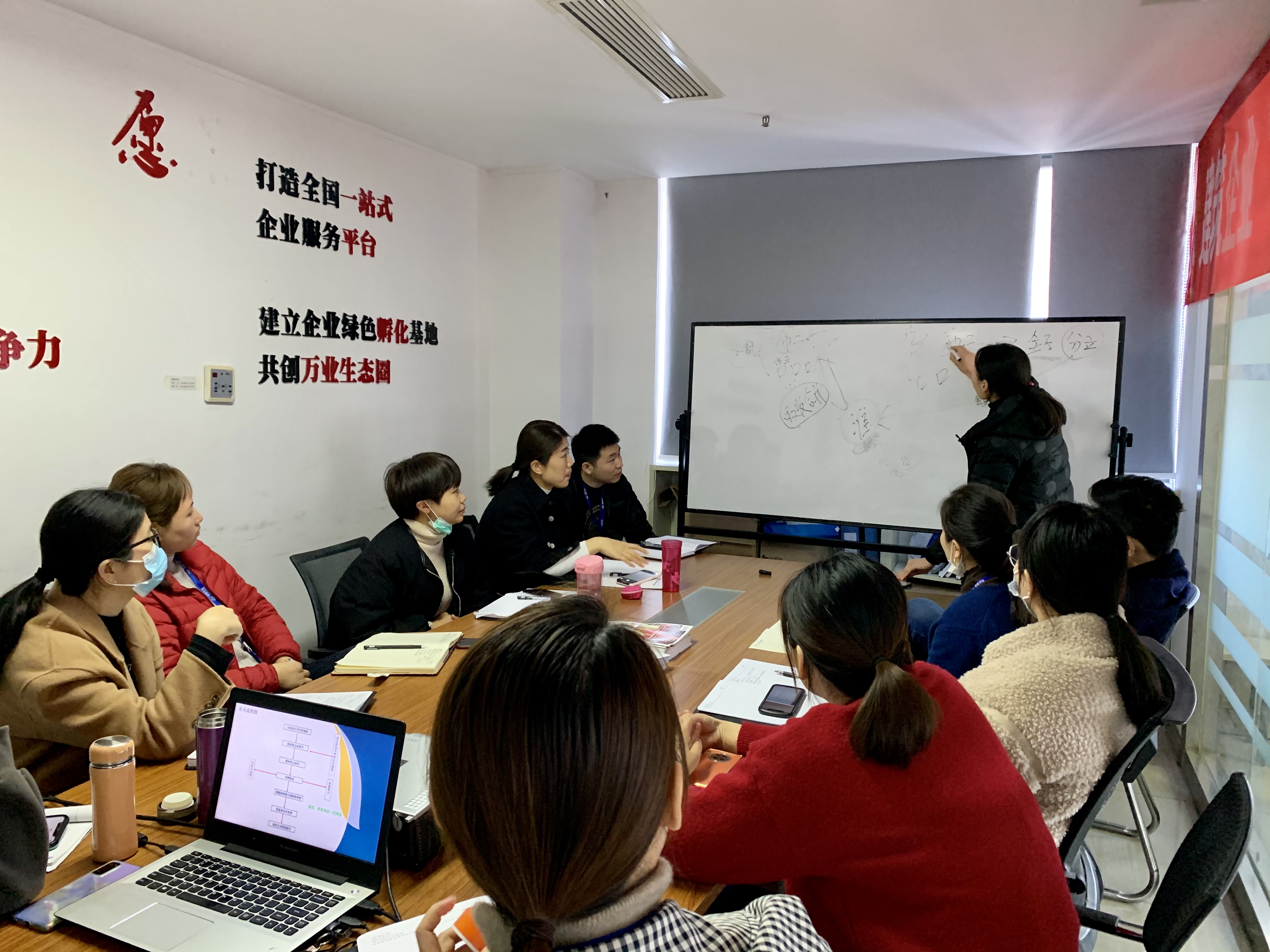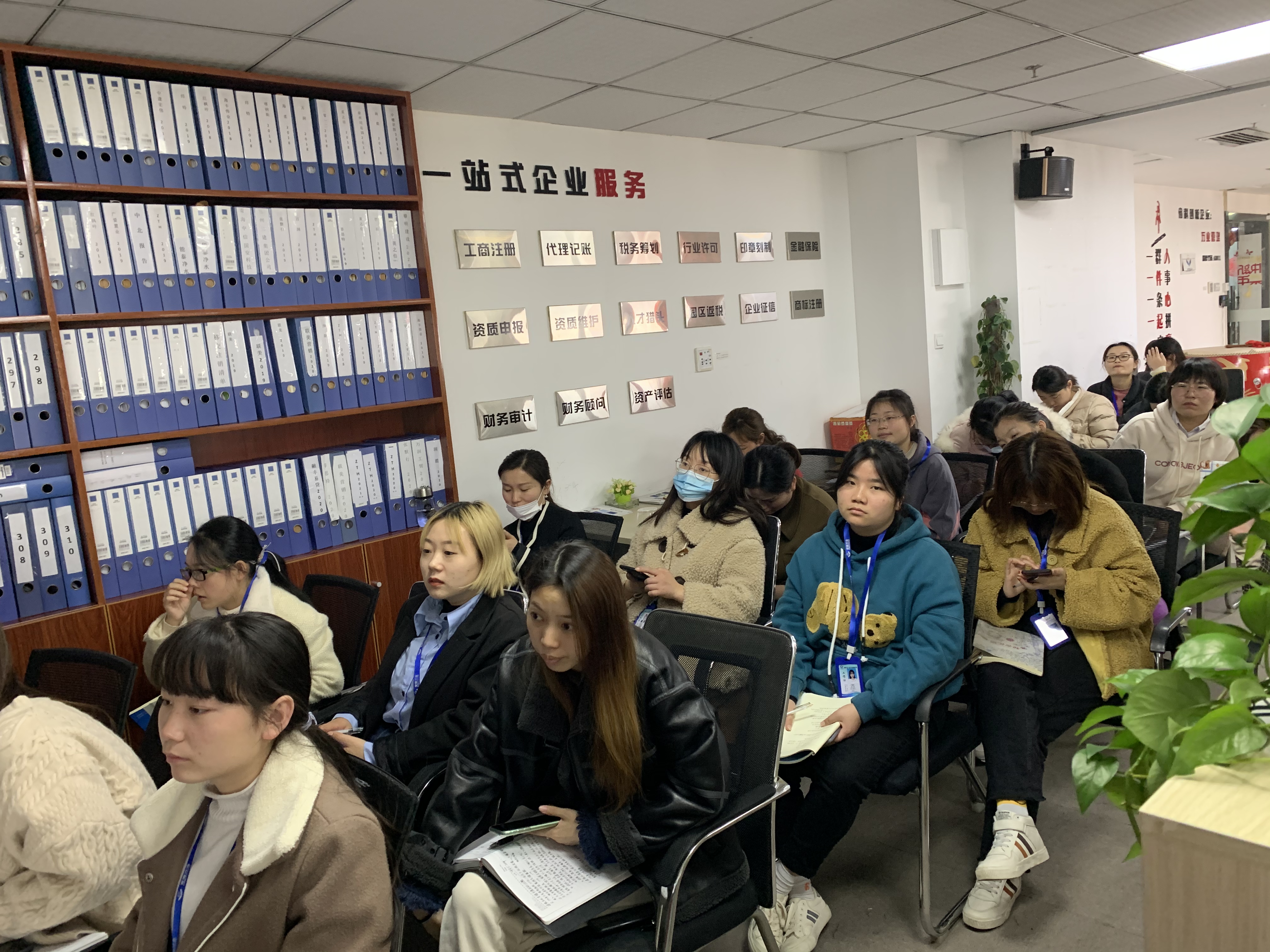 緊接著,下午,安徽萬業(yè)中天衡——王所、會(huì)計(jì)部——許主管為大家講解了“稅籌產(chǎn)品、稅籌服務(wù)、財(cái)務(wù)知識(shí)”“購買社保流程”,全員積極參與,用心傾聽。
