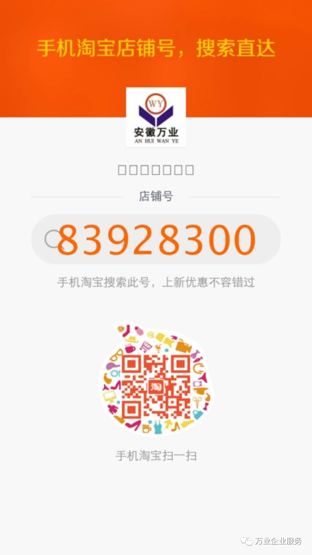 通過近期的準(zhǔn)備,安徽萬業(yè)企業(yè)管理有限公司開通淘寶店啦!為了更方便優(yōu)質(zhì)的為您服務(wù)!