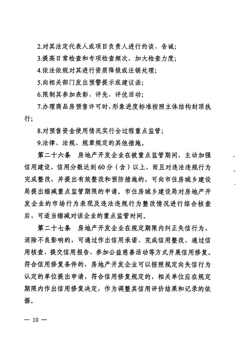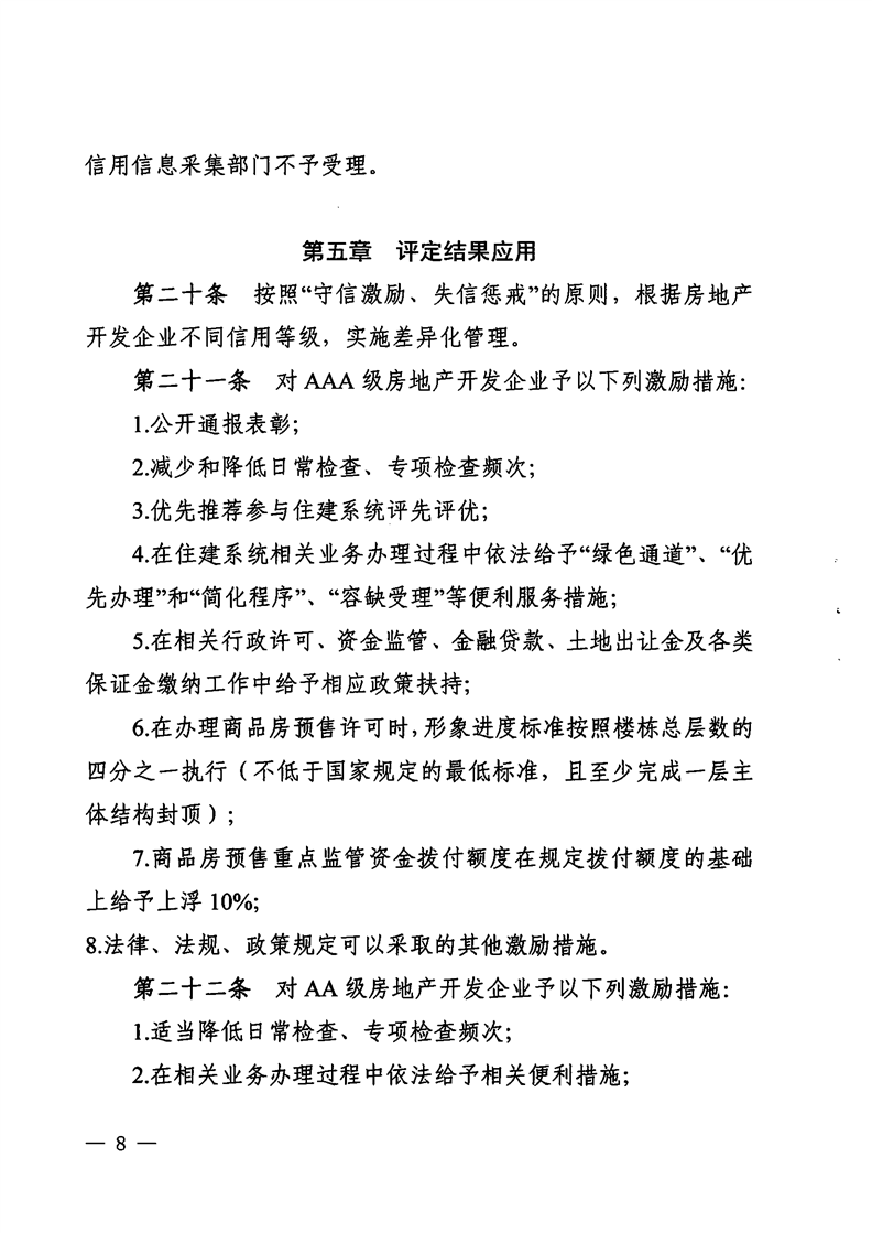 為繼續(xù)推進(jìn)行業(yè)信用體系建設(shè),房地產(chǎn)開發(fā)相關(guān)部門宜進(jìn)一步深化信用管理,積極探索開發(fā)企業(yè)信用評價結(jié)果的使用,引導(dǎo)開發(fā)企業(yè)積極創(chuàng)優(yōu),提高房地產(chǎn)開發(fā)企業(yè)誠信經(jīng)營意識,鼓勵開發(fā)企業(yè)走責(zé)任地產(chǎn)、品質(zhì)地產(chǎn)之路,為社會提供更好的產(chǎn)品和服務(wù)。
